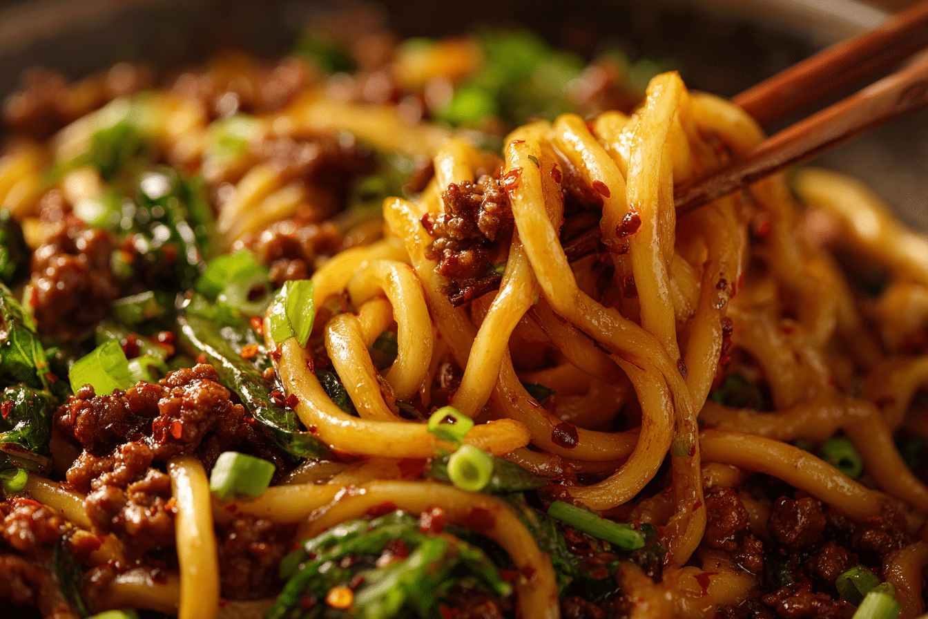 Ground beef forms the rich, savory base of Asian-Style Ground Beef Spaghetti. An 85 to 90 percent lean blend works well, providing flavor without excess grease. Leaner beef can be used, though a small amount of fat helps carry the sauce.
