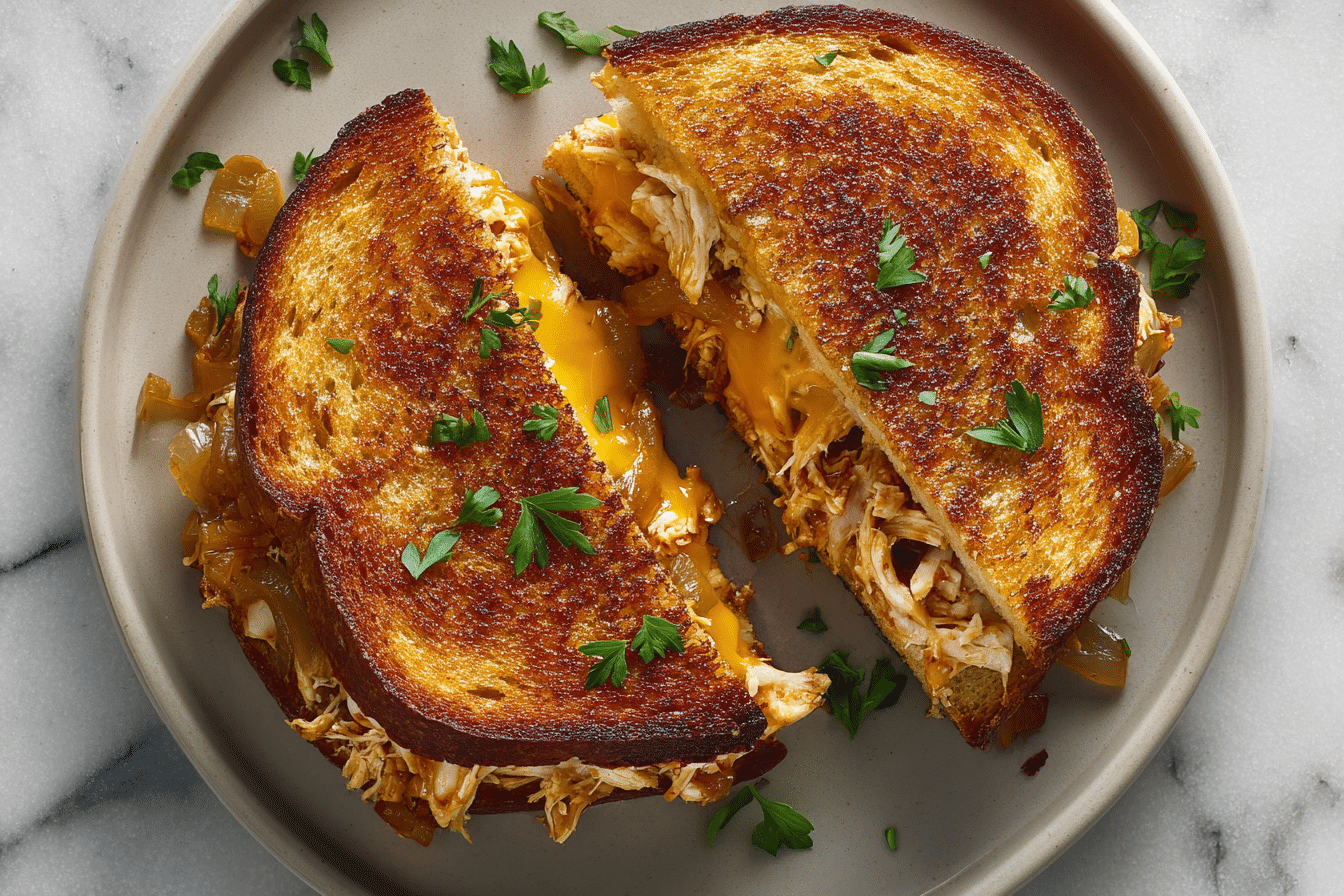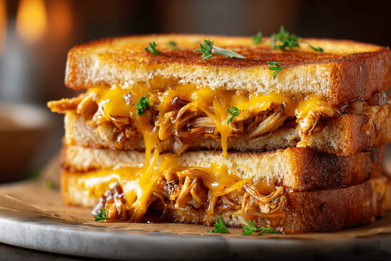 This BBQ Chicken Grilled Cheese is the ultimate comfort sandwich—loaded with juicy shredded chicken, smoky BBQ sauce, and melted cheese between crispy golden bread. It’s quick, satisfying, and perfect for lunch, dinner, or game day cravings.