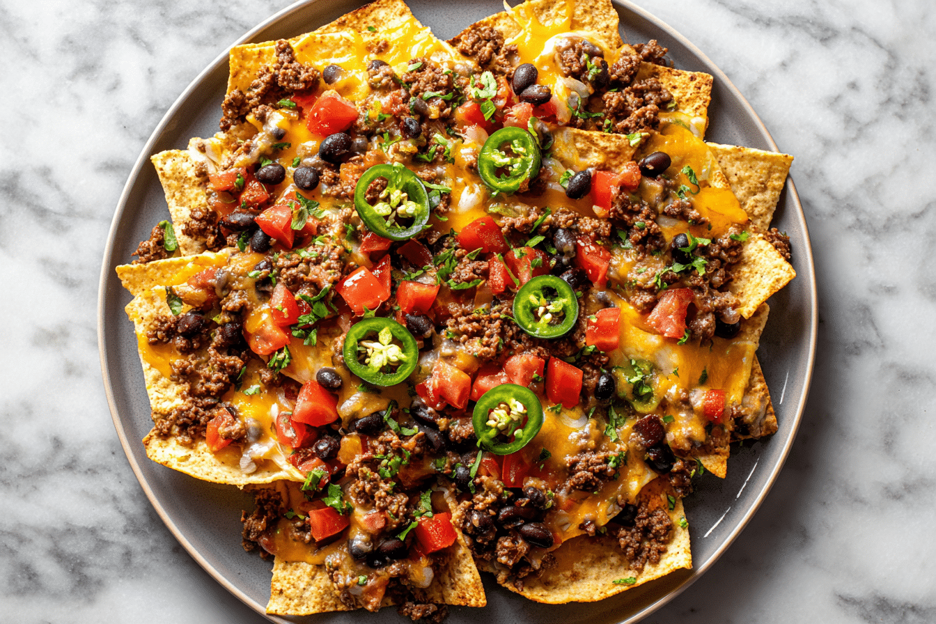 - BBQ chicken nachos: Swap beef for shredded BBQ chicken