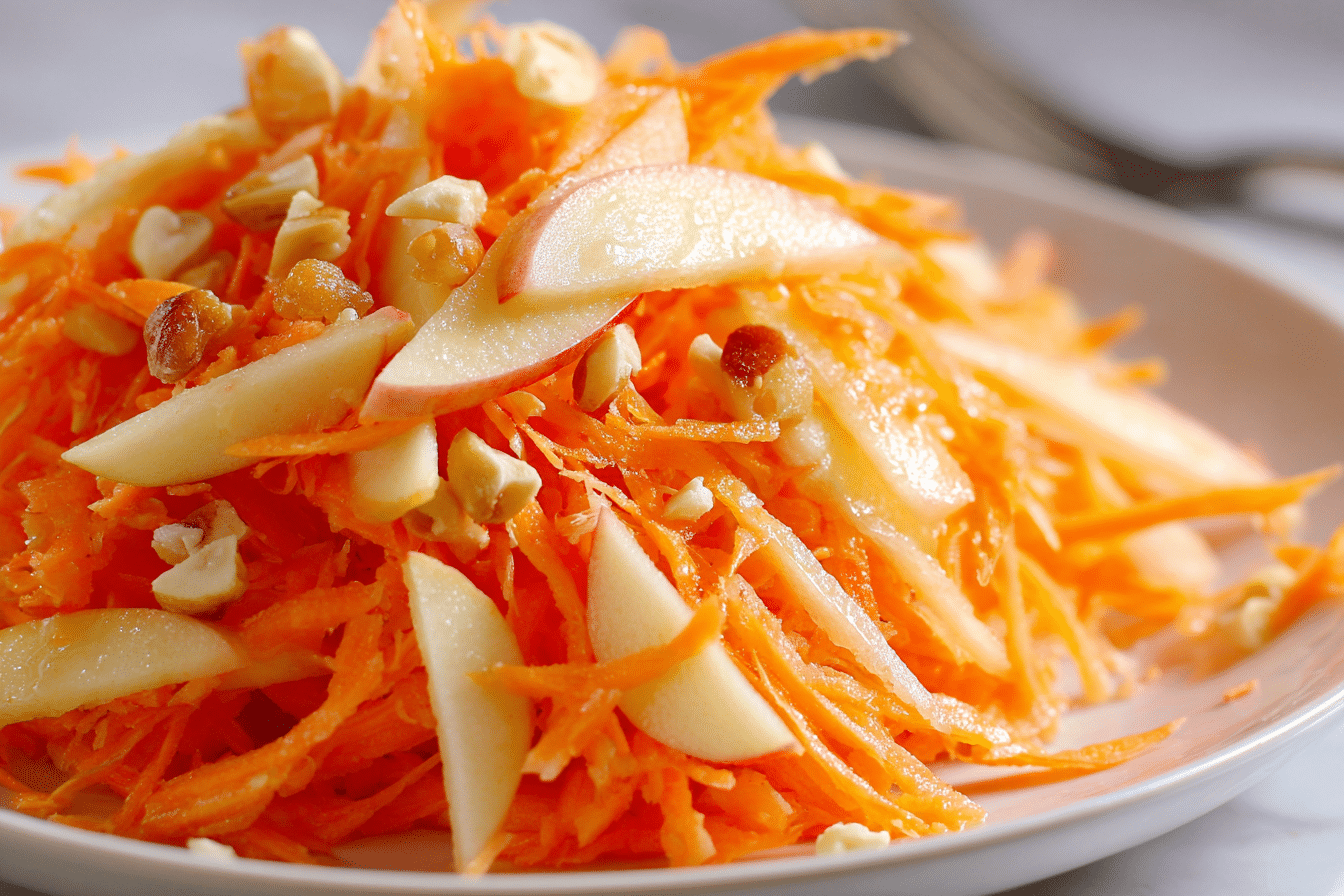 Popular in many European and American home kitchens, carrot apple salad is known for its simple ingredients and vibrant flavor. It’s quick to prepare and packed with nutrients, making it a wholesome addition to everyday meals.