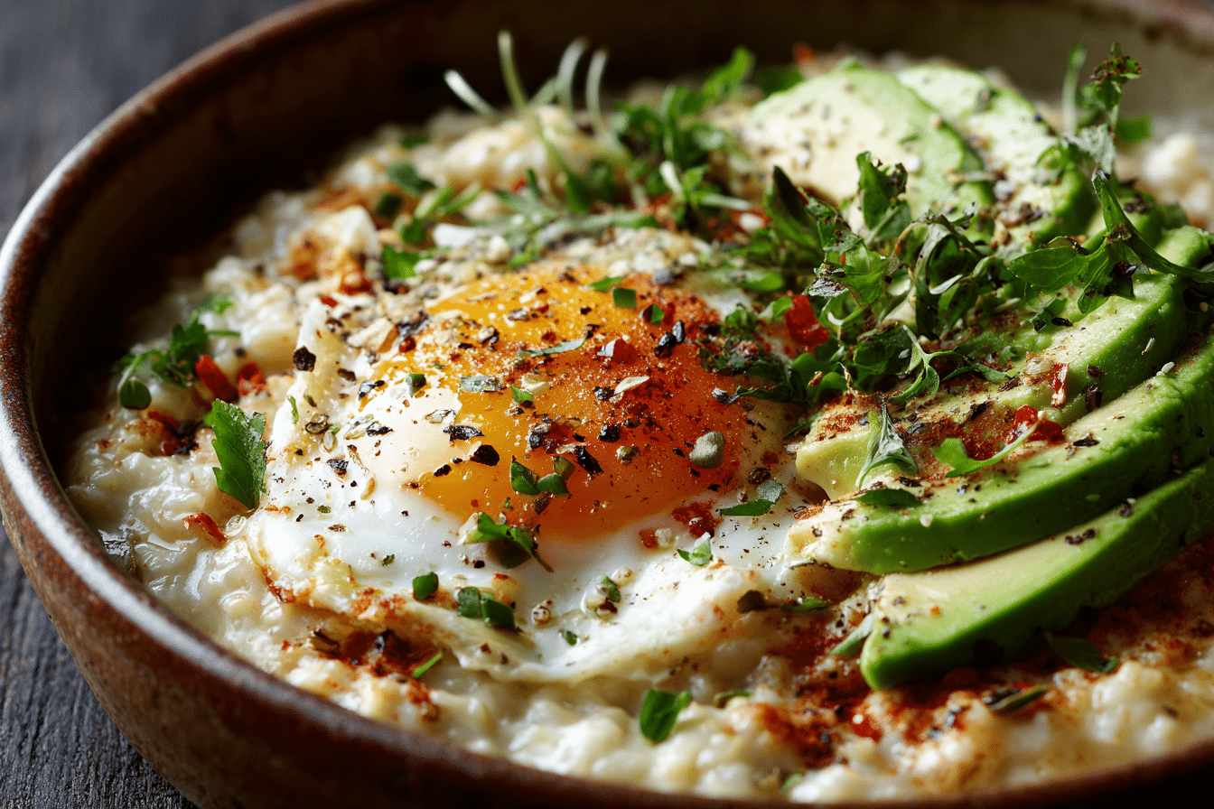 Cheesy Savory Avocado Oatmeal is a delicious twist on traditional sweet oatmeal. This hearty bowl combines creamy oats, melted cheese, and rich avocado for a comforting, savory breakfast that’s packed with protein, fiber, and healthy fats.