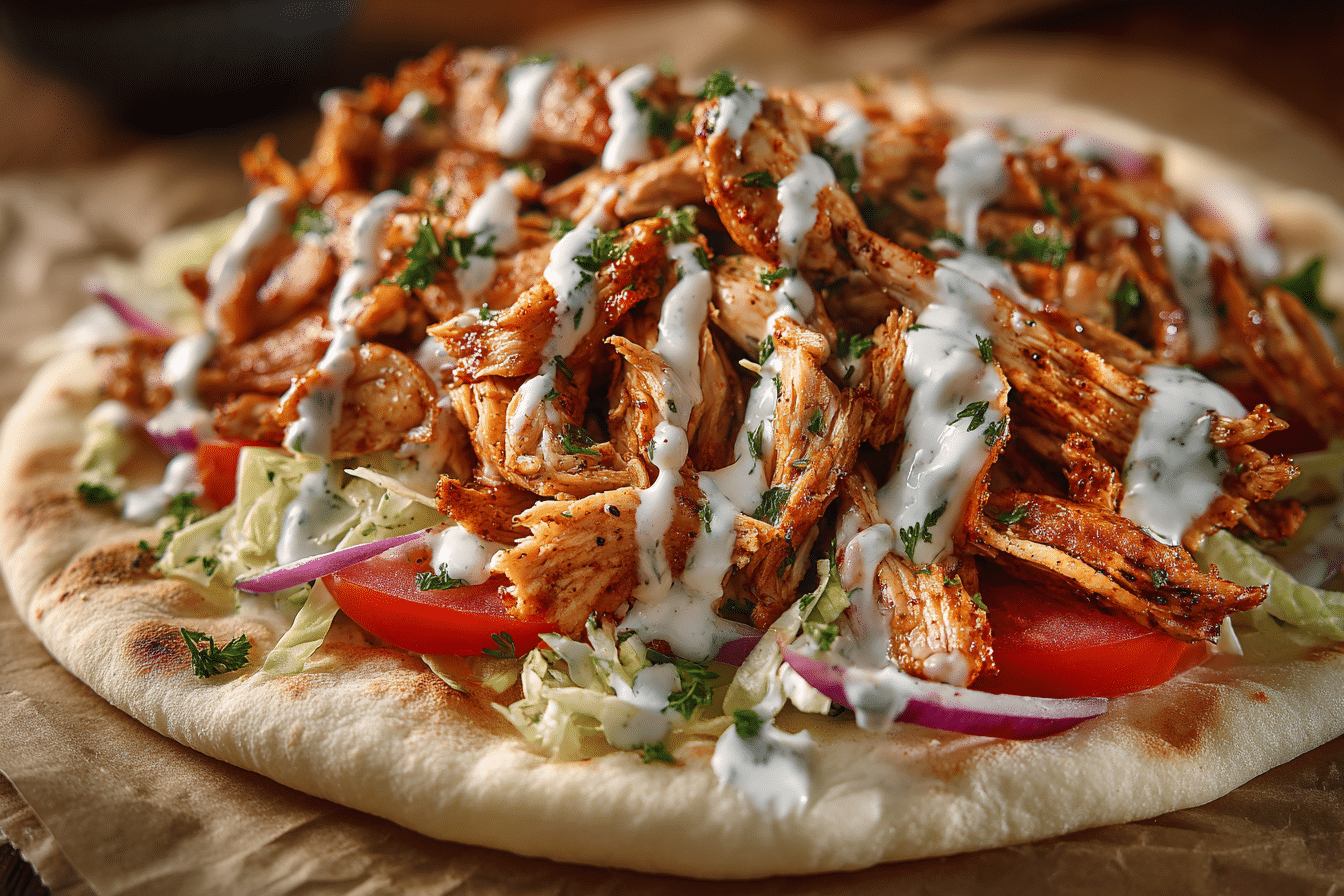 Chicken Shawarma with Garlic Sauce is bold, juicy, and bursting with Middle Eastern flavor. With tender spiced chicken and creamy garlic sauce wrapped in warm bread, every bite is satisfying and unforgettable.