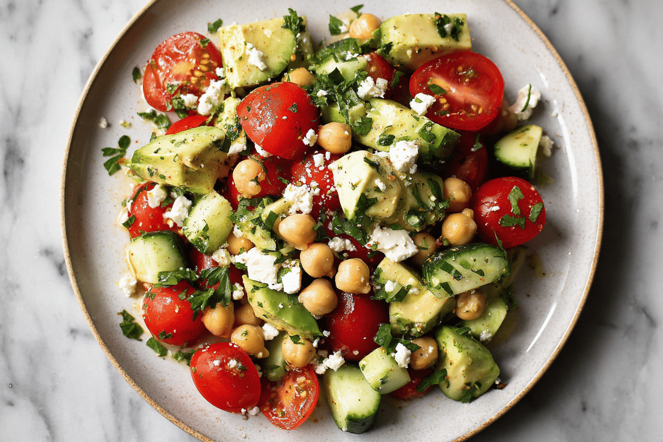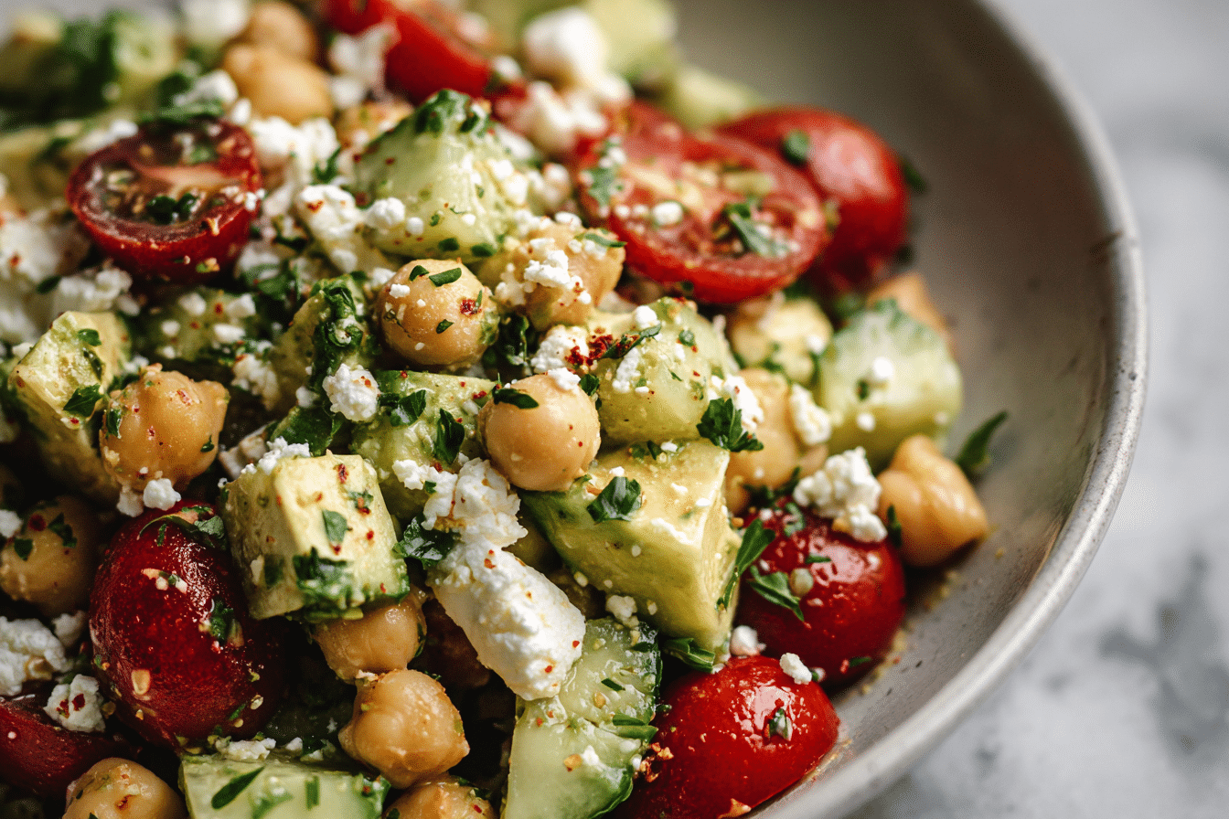 Every bite offers a mix of textures—soft avocado, firm chickpeas, crumbly feta, and crisp vegetables—all brought together with a bright, lemony dressing. The flavors are clean, balanced, and naturally refreshing without needing heavy ingredients or complicated steps.