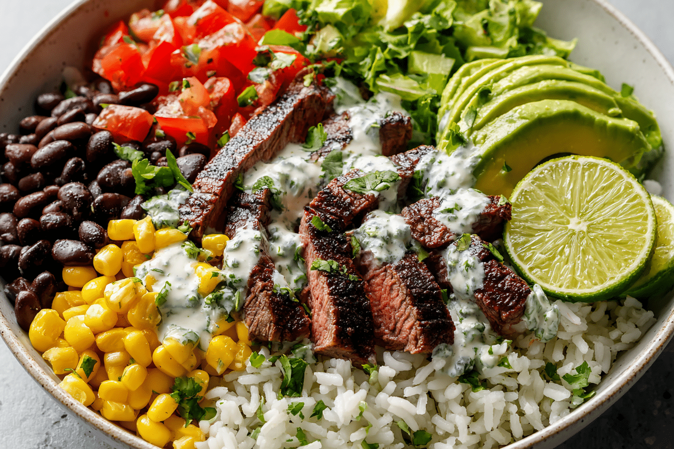 Inspired by Tex-Mex bowl-style favorites and fresh grill flavors, this recipe combines smoky steak with refreshing herbs and zesty lime. It’s ideal for meal prep, quick dinners, or customizable family meals.
