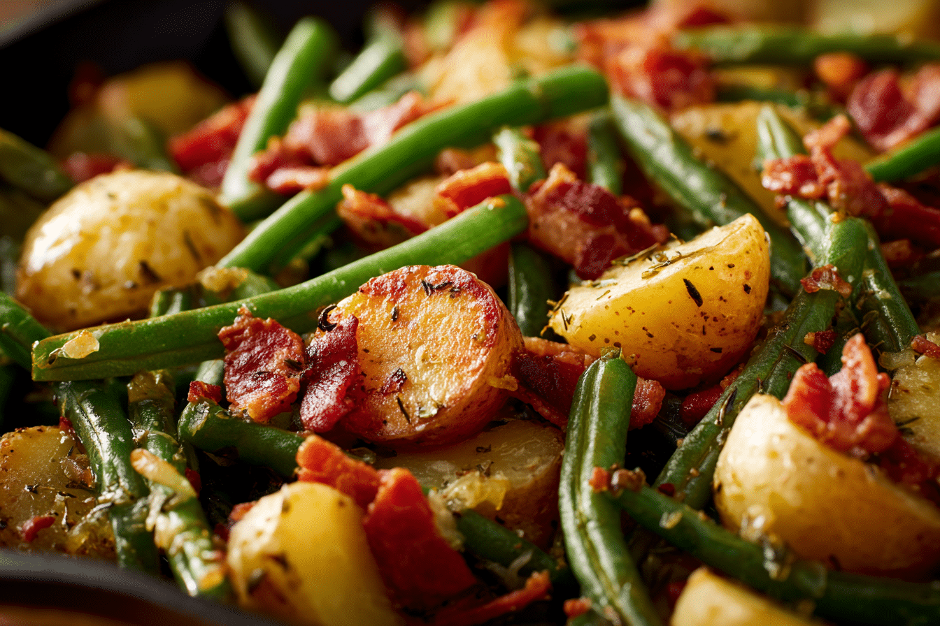 Country Ranch Green Beans and Potatoes with Bacon is a hearty, flavorful, and easy-to-make side dish that pairs perfectly with grilled meats, roasted chicken, or weekend dinners. Tender green beans and golden potatoes are tossed with crispy bacon and a savory ranch seasoning, creating a dish that’s both comforting and irresistible.
