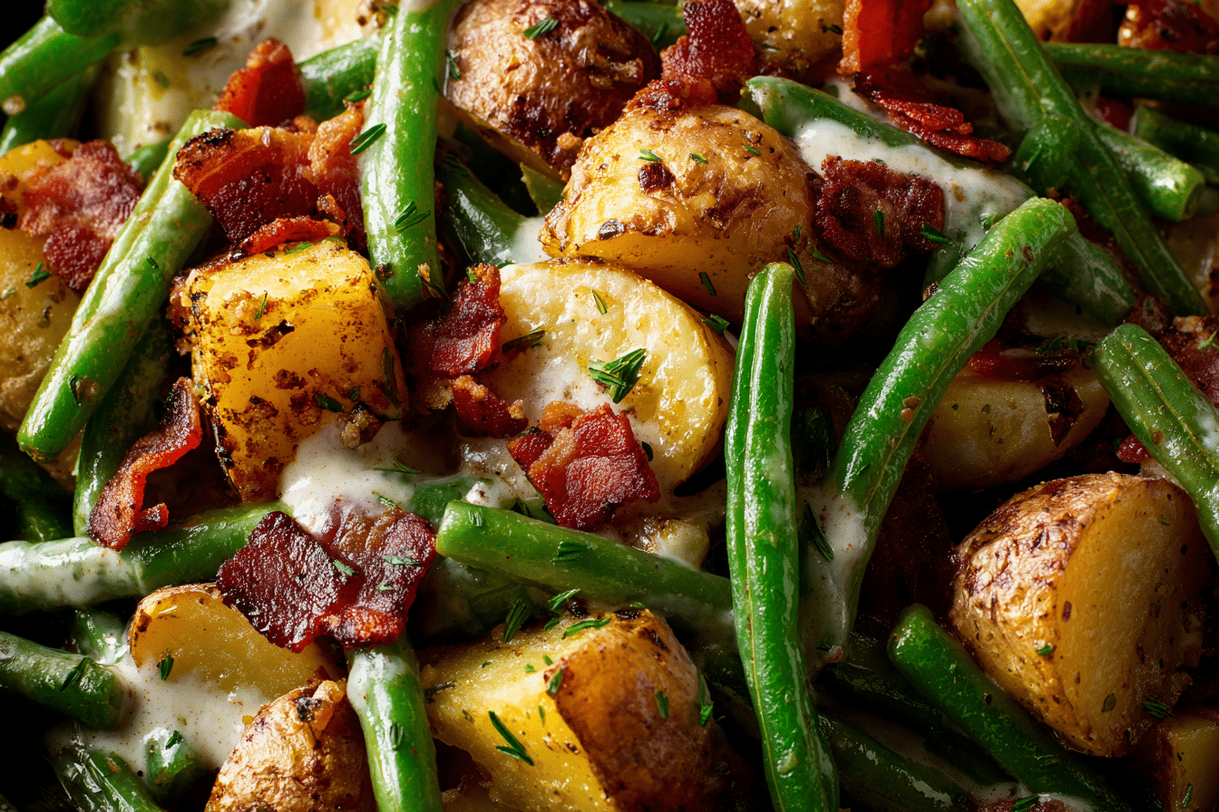 Country Ranch Green Beans and Potatoes with Bacon is a hearty, flavorful, and easy-to-make side dish that pairs perfectly with grilled meats, roasted chicken, or weekend dinners. Tender green beans and golden potatoes are tossed with crispy bacon and a savory ranch seasoning, creating a dish that’s both comforting and irresistible.