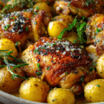 This Cozy Garlic Parmesan Crockpot Chicken & Potatoes recipe is everything you want in a slow cooker meal: comforting, flavorful, and incredibly easy to prepare. With tender chicken thighs or breasts, baby potatoes, garlic, and a rich parmesan cream sauce, this dish practically cooks itself while filling your home with mouthwatering aromas.