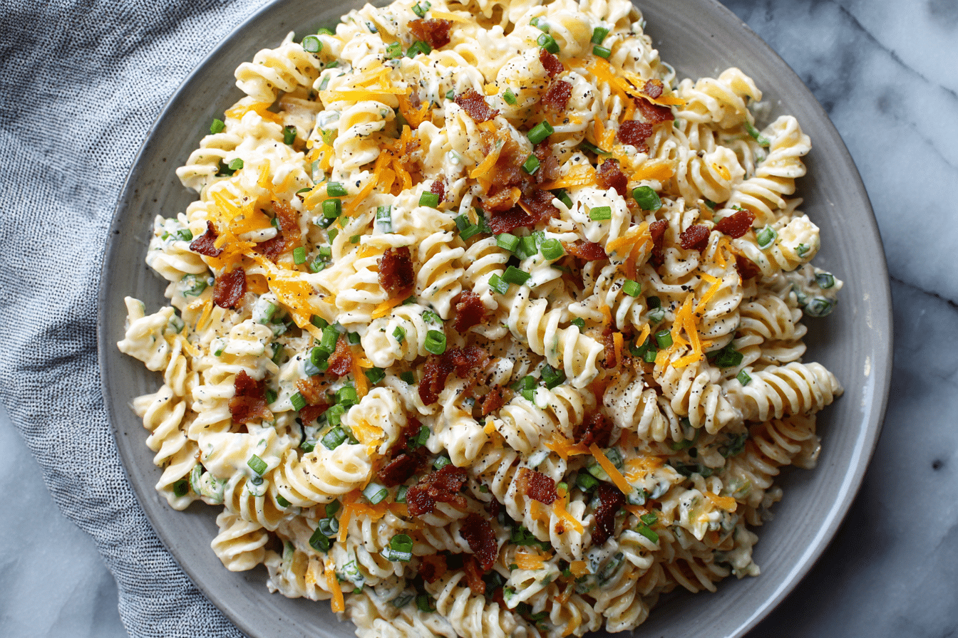 This Creamy Bacon Cheddar Ranch Pasta Salad is rich, crunchy, creamy, and incredibly addictive, making it a guaranteed potluck favorite 🥓🧀✨