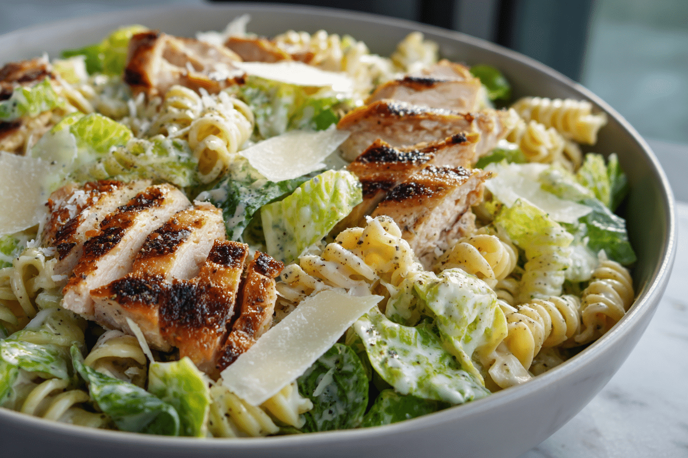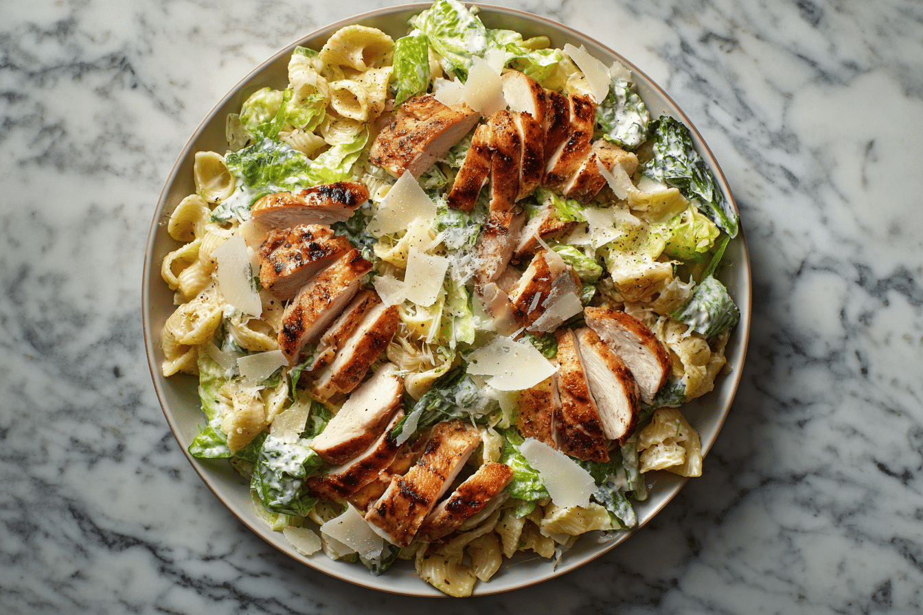 This Creamy Chicken Caesar Pasta Salad combines tender chicken, pasta, crisp veggies, and a rich Caesar dressing for a crowd-pleasing dish that’s perfect for parties, potlucks, or family gatherings.