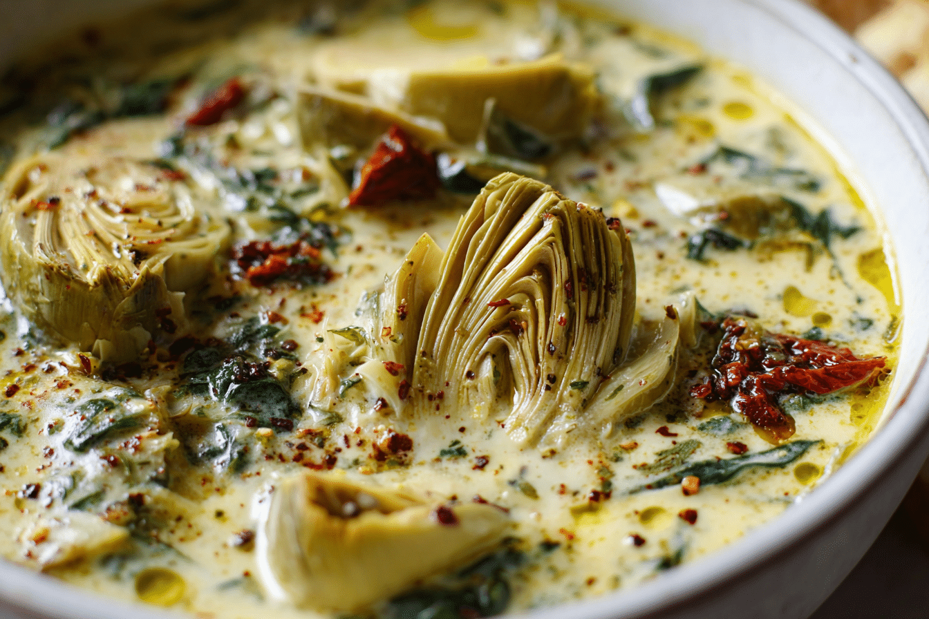 A1: It’s best to avoid marinated ones for this soup — they add oil and vinegar flavors that can overpower the broth. Use plain canned or frozen artichoke hearts.