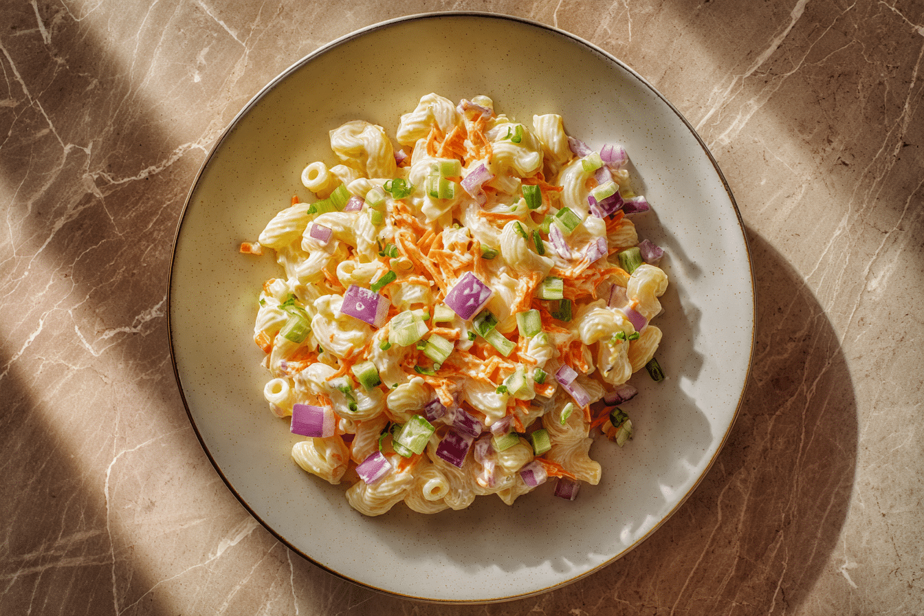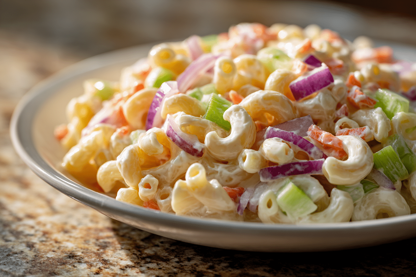 This Creamy Macaroni Salad is a rich, tangy, and perfectly balanced side dish made with tender pasta, crunchy veggies, and a smooth, creamy dressing. It’s a must-have for BBQs, picnics, and family gatherings—simple, nostalgic, and always a hit.