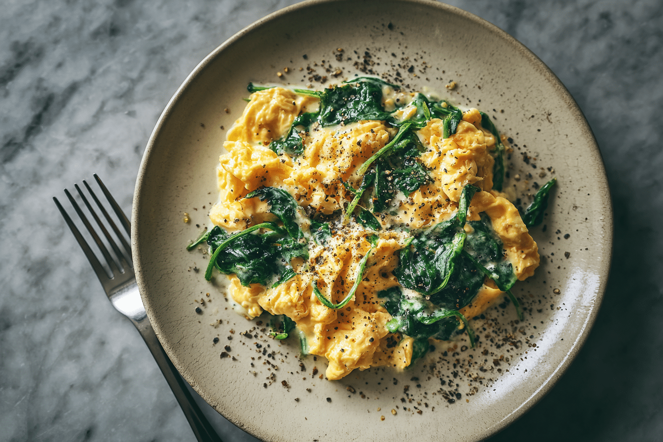 This Creamy Spinach and Eggs dish is quick, comforting, and packed with protein and greens, making it a healthy, satisfying start to your day. 🥬🍳✨