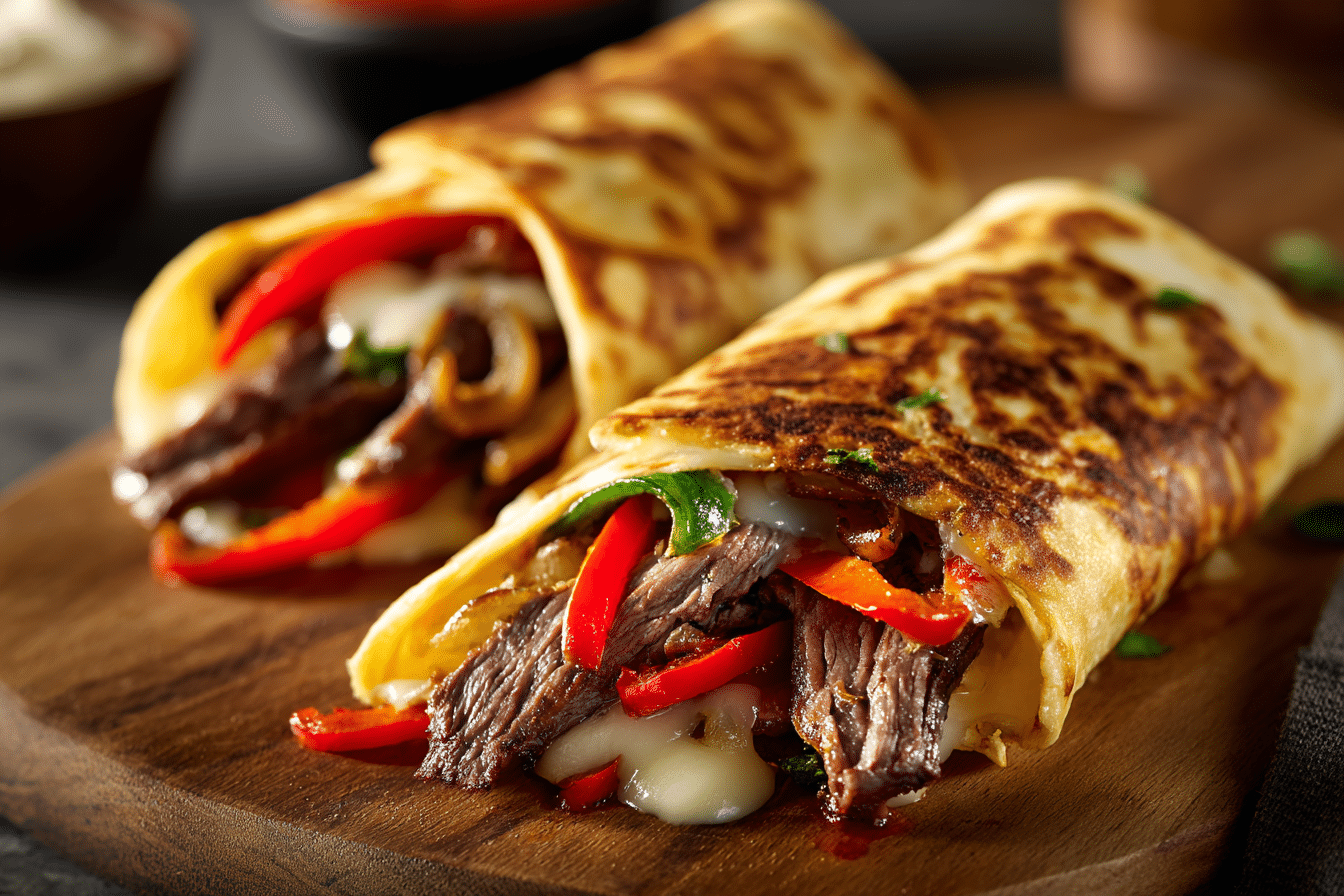 These Crispy Philly Cheesesteak Grilled Wraps are a delicious twist on the classic sandwich—filled with juicy steak, sautéed peppers and onions, and melted cheese, all wrapped in a tortilla and grilled until golden and crispy. Perfect for quick dinners, game nights, or comfort food cravings.