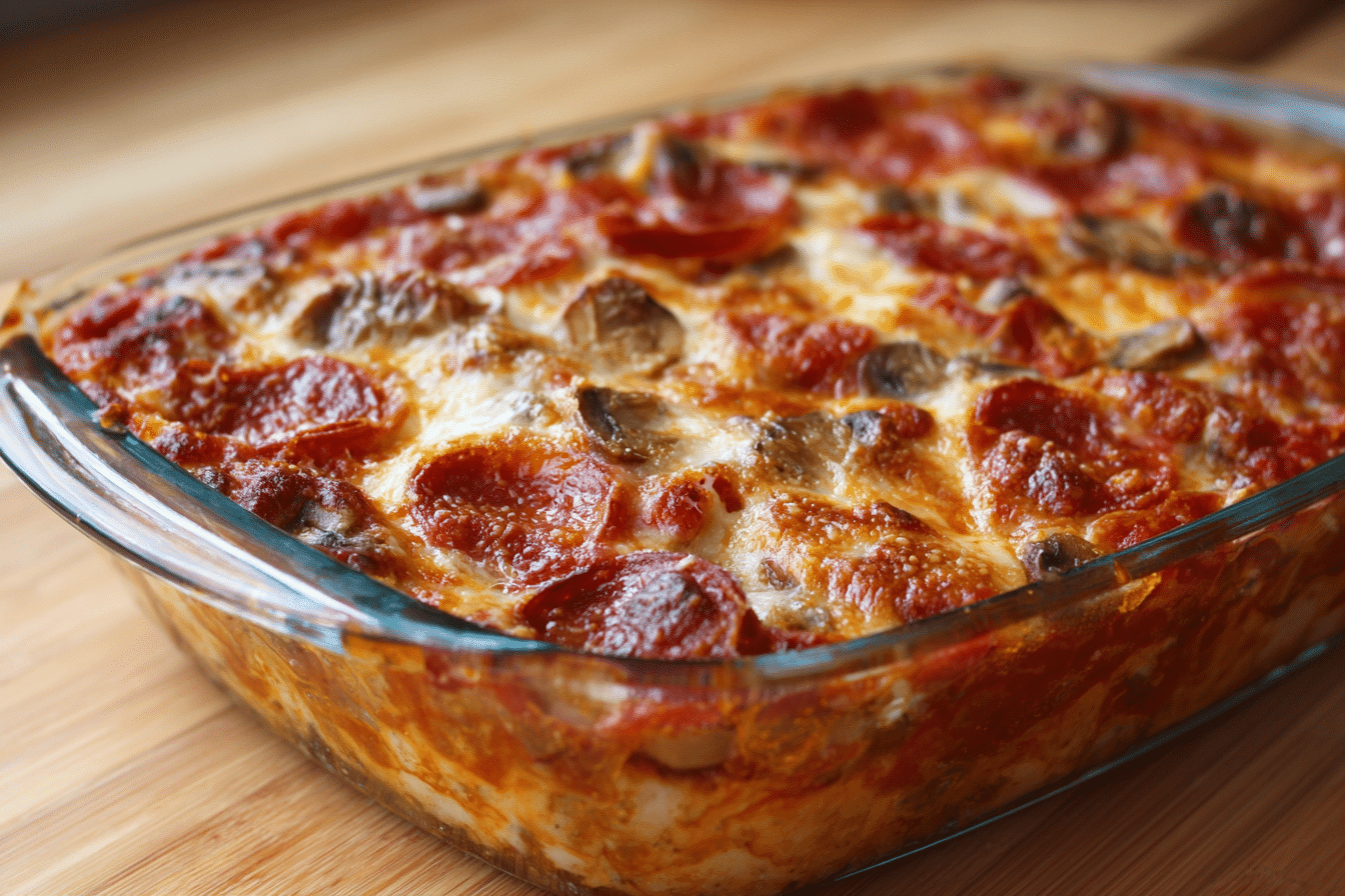 Easy Low Carb Pizza Casserole – Cheesy, Meaty, and Crust-Free