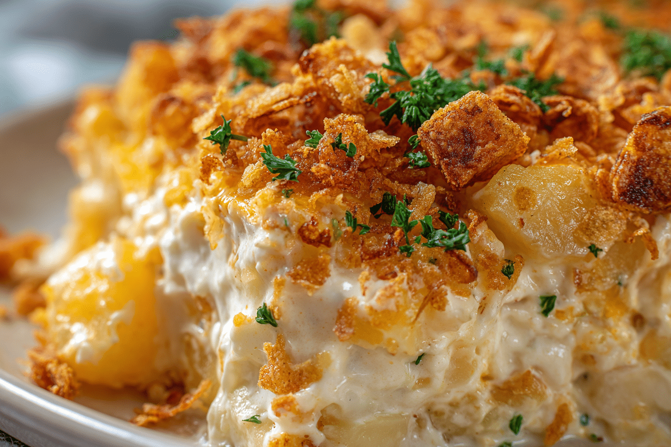 French Onion Funeral Potatoes are a classic comfort-food casserole perfect for potlucks, family gatherings, holidays, or “funeral” meals (a term many communities use for easy, make-ahead comfort dishes). This casserole layers tender potatoes with a creamy cheese sauce, French onion soup flavor, and a crunchy topping — rich, savory, and totally irresistible.