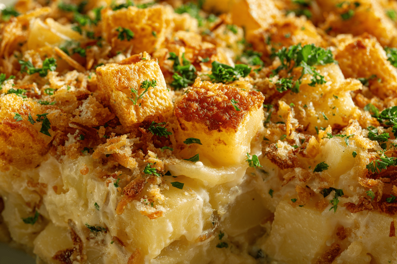 French Onion Funeral Potatoes are a classic comfort-food casserole perfect for potlucks, family gatherings, holidays, or “funeral” meals (a term many communities use for easy, make-ahead comfort dishes). This casserole layers tender potatoes with a creamy cheese sauce, French onion soup flavor, and a crunchy topping — rich, savory, and totally irresistible.