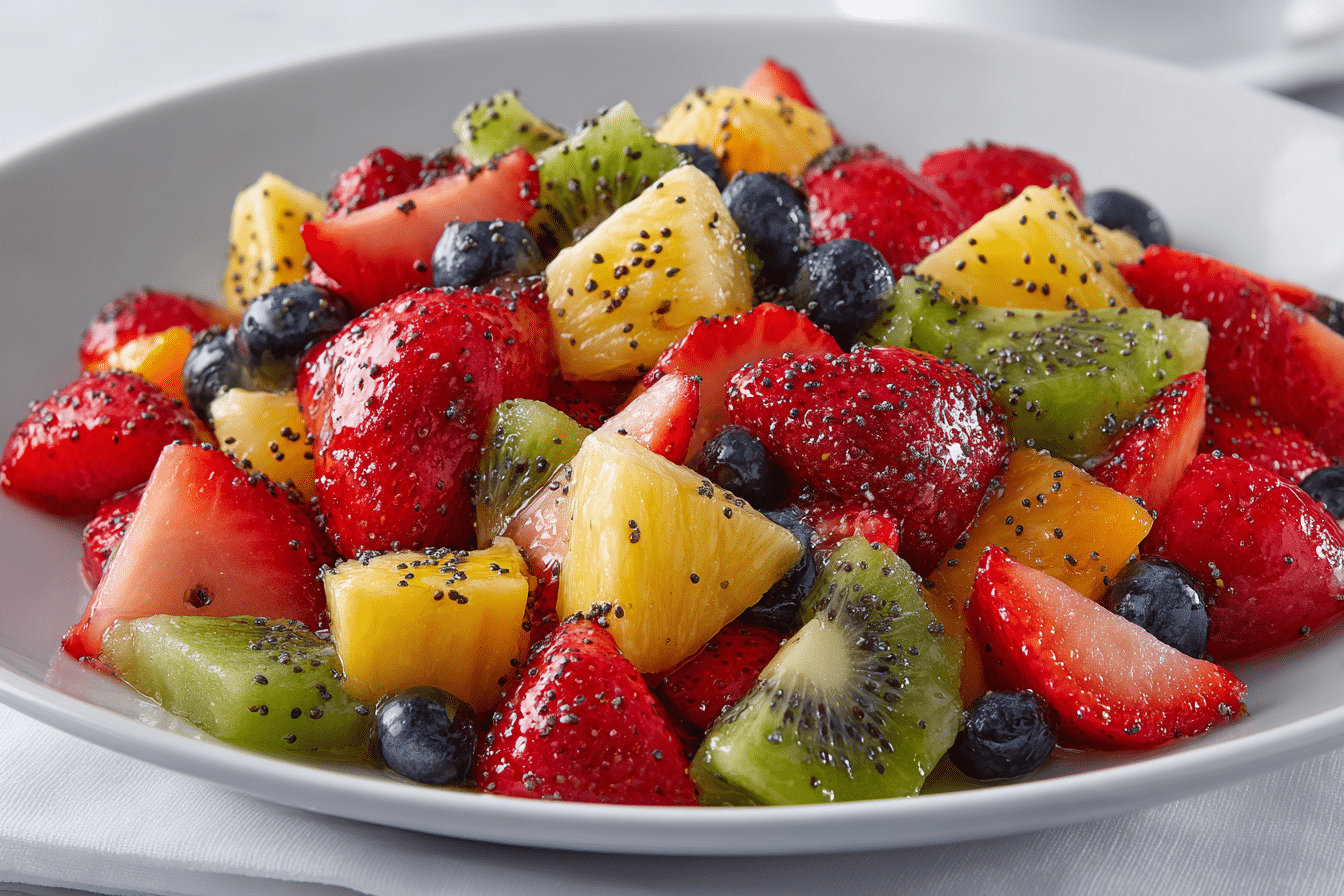 Fresh Fruit Salad with Honey-Lime Poppy Seed Dressing is a bright, colorful dish that’s perfect for spring gatherings and holiday meals. Packed with juicy seasonal fruits and coated in a light citrus dressing, this salad is both refreshing and naturally sweet.