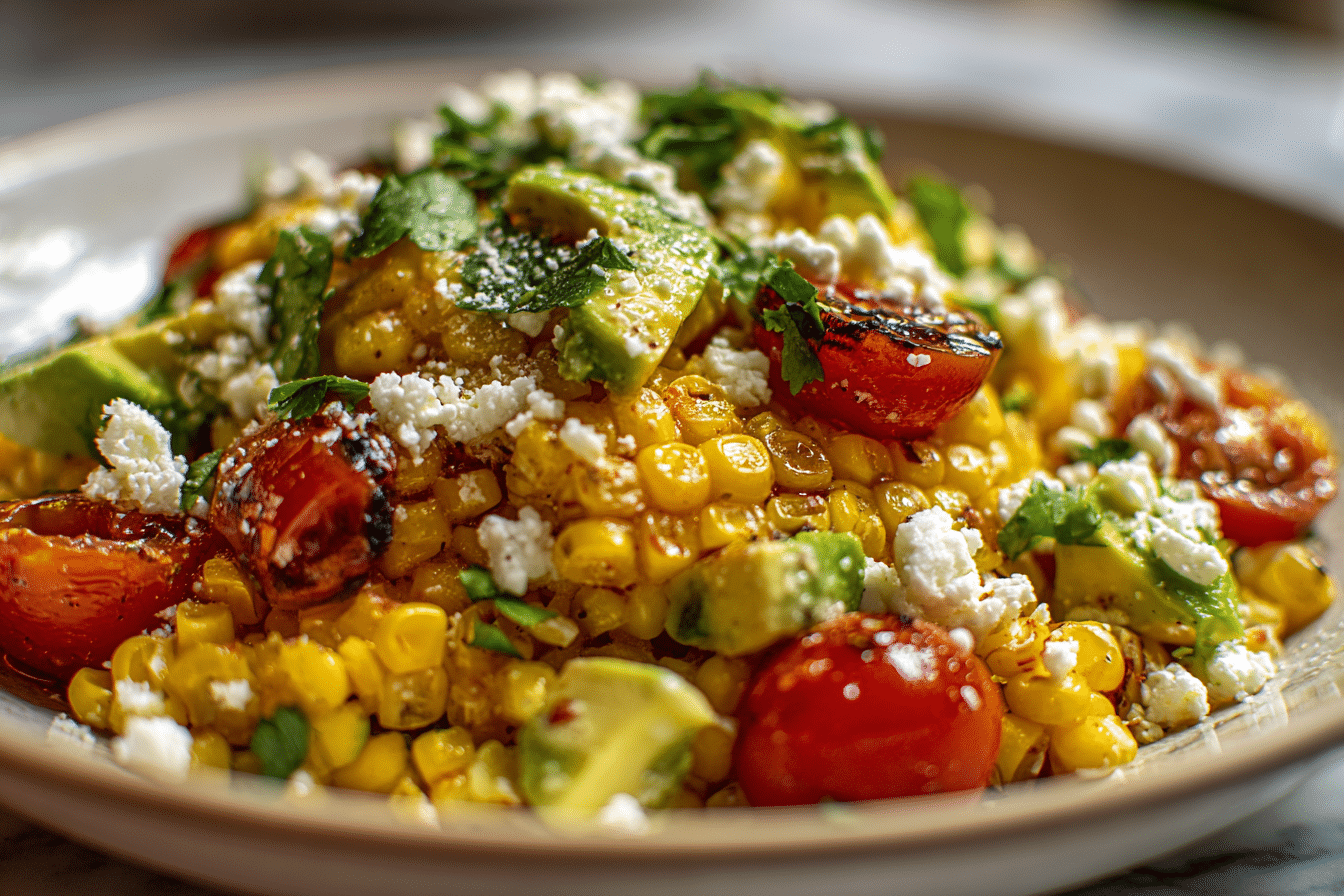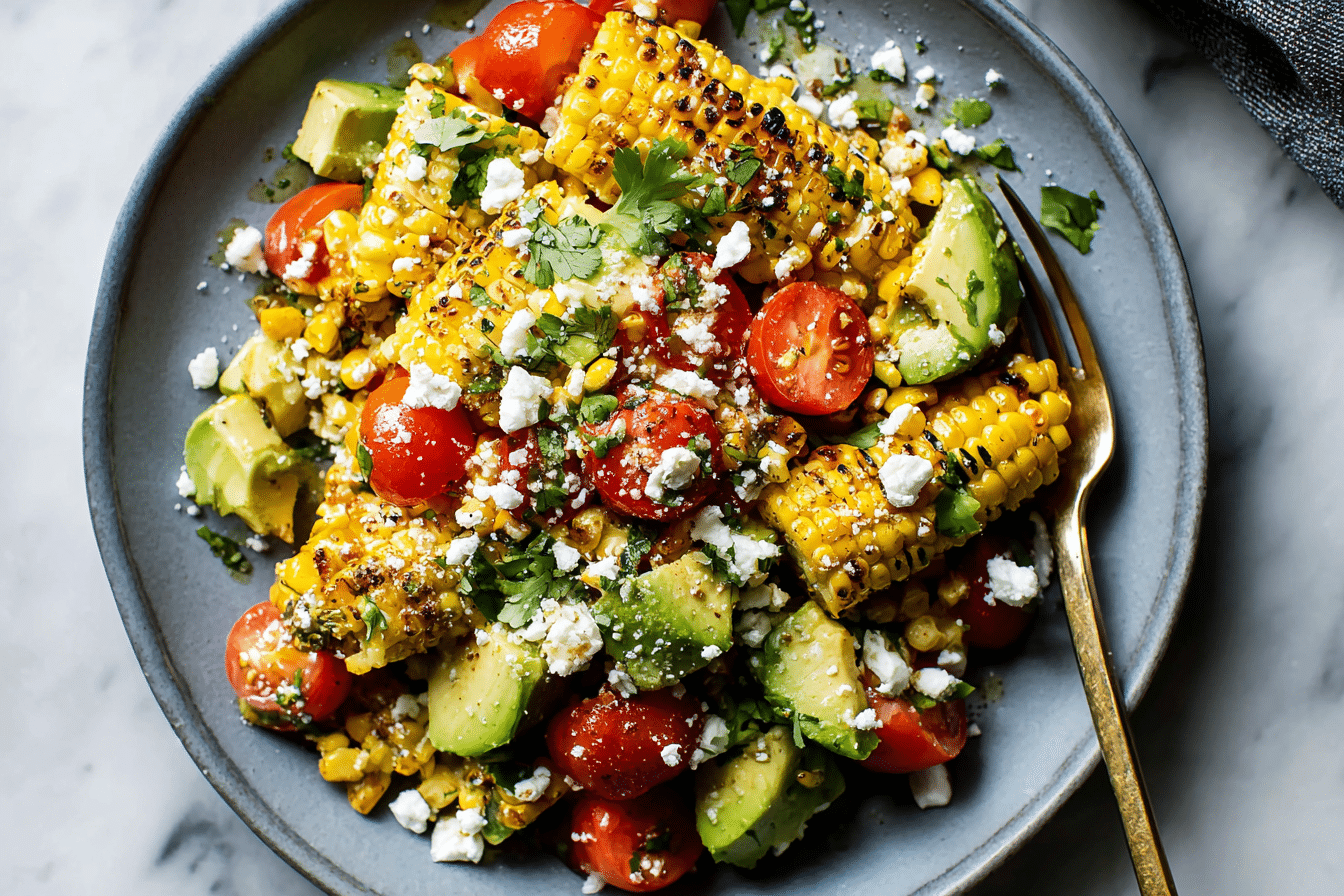 This Grilled Corn Salad is a bright, flavorful dish made with charred sweet corn, fresh veggies, herbs, and a zesty dressing. It’s smoky, slightly sweet, and perfect for BBQs, cookouts, or light summer meals.