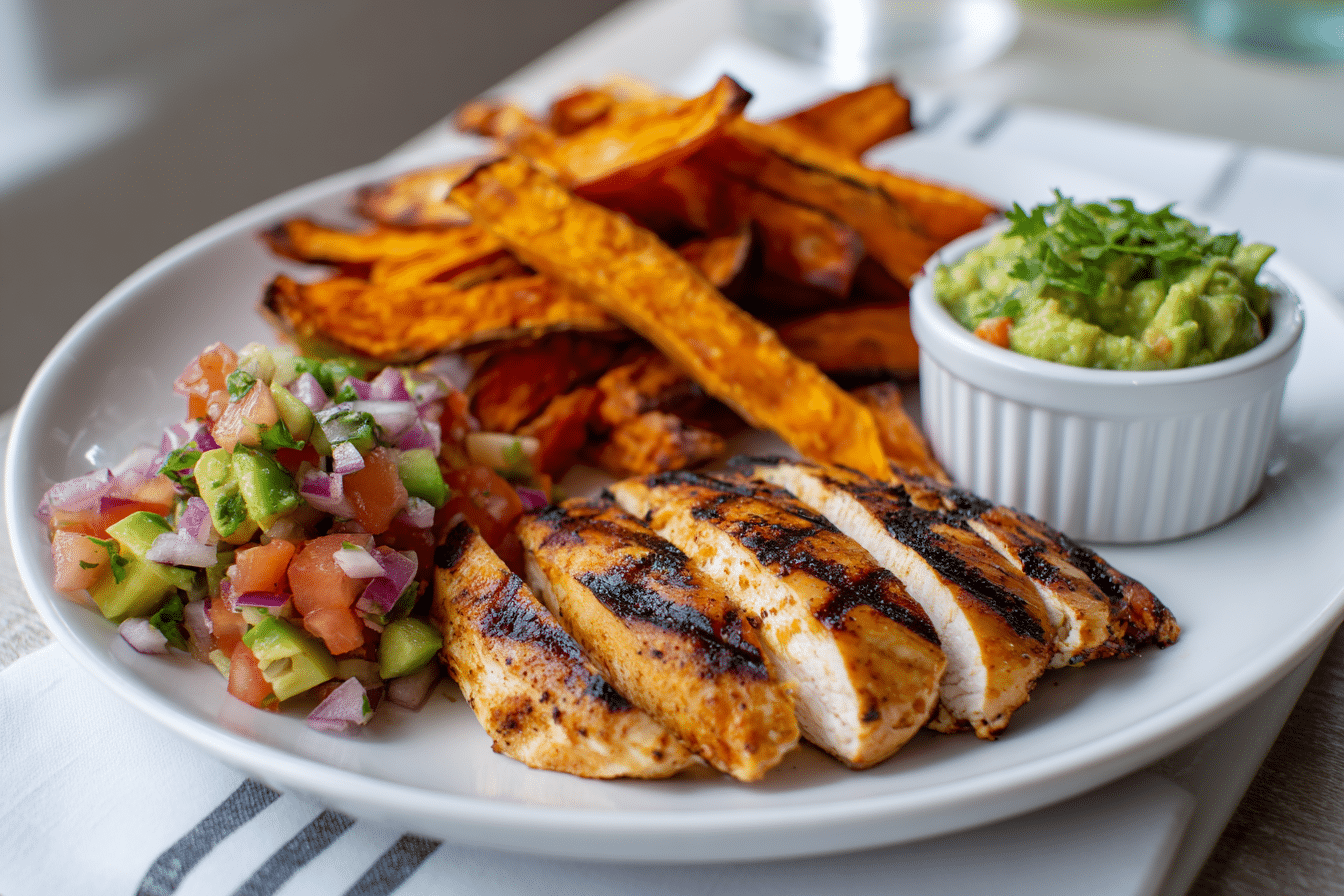 This Grilled Herb Chicken Bowl with Sweet Potato Fries and Avocado Salsa is a fresh, hearty, and healthy meal loaded with protein, good fats, and bold flavor — ideal for meal prep or a wholesome dinner.