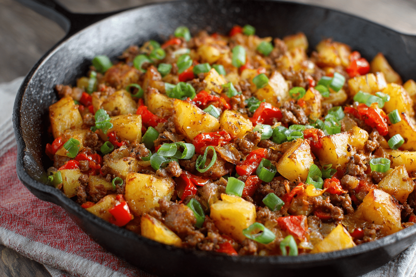 This recipe is the ultimate pantry-friendly dinner. It doesn’t require fancy ingredients or complicated techniques, and yet it delivers big flavor in every bite. Whether you call it a skillet hash, country beef and potatoes, or cowboy dinner, it’s a meal that works any night of the week.