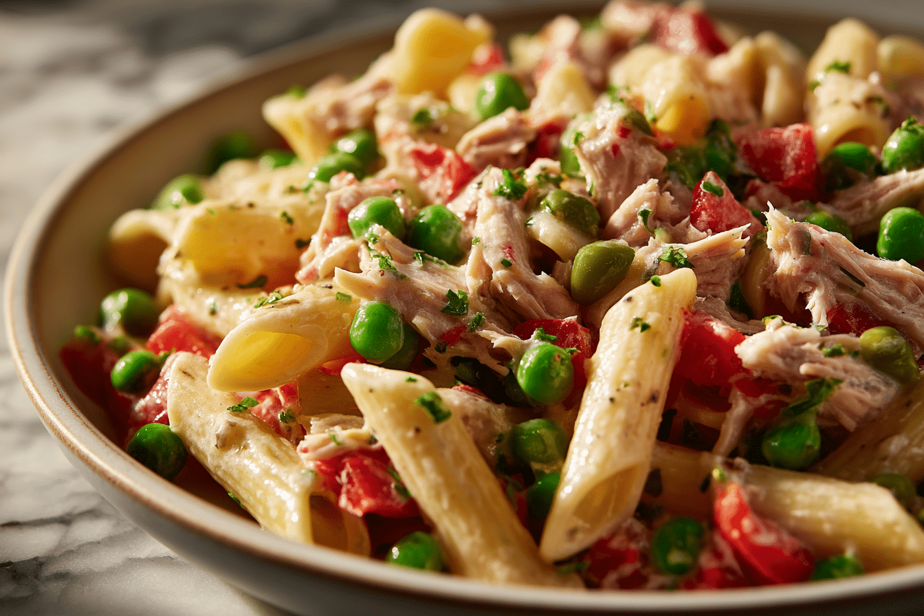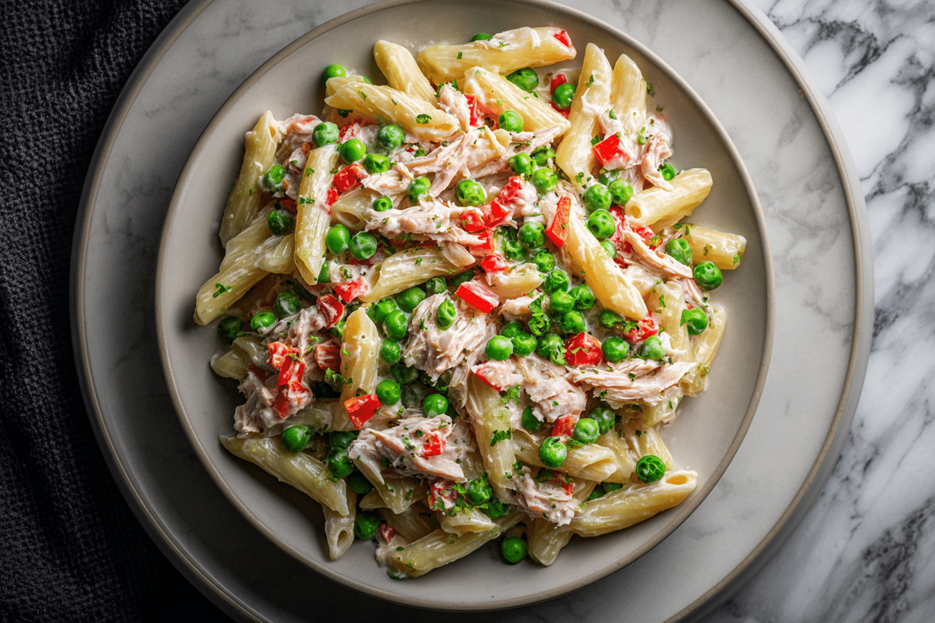 This Healthy Tuna Pasta Salad is light, nutritious, and full of flavor. Perfect for summer lunches, picnics, or meal prep, it combines tender pasta, protein-rich tuna, sweet peas, and a creamy yet healthy dressing. Serve it cold for a refreshing meal.