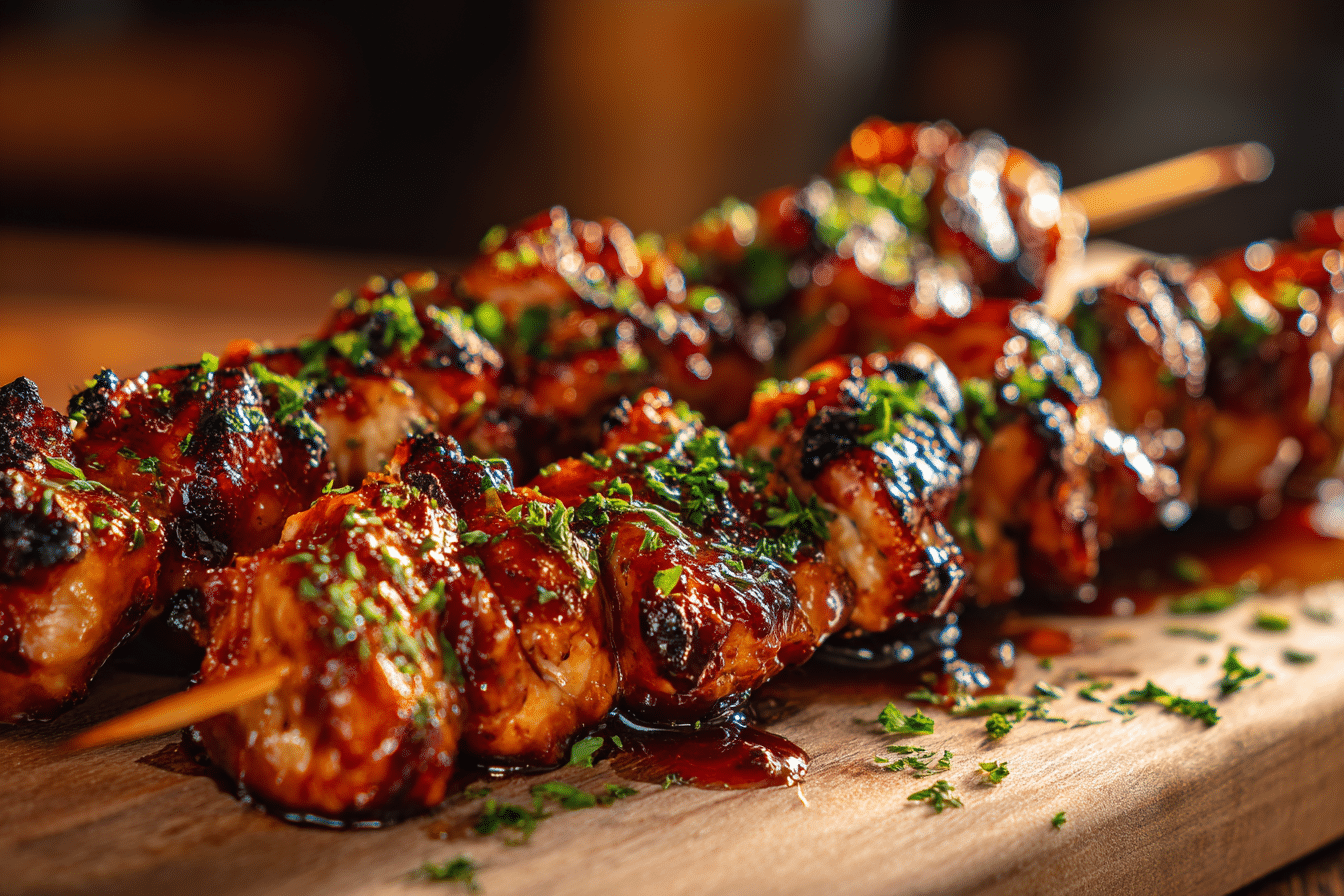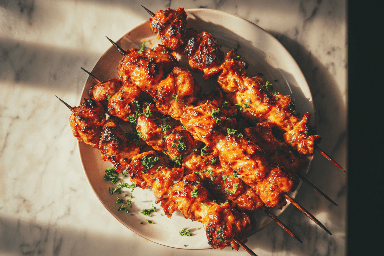These Juicy BBQ Chicken Skewers are perfectly seasoned, lightly charred, and coated in a sweet-smoky BBQ glaze. They’re easy to make, great for grilling season, and perfect for parties, meal prep, or quick weeknight dinners.