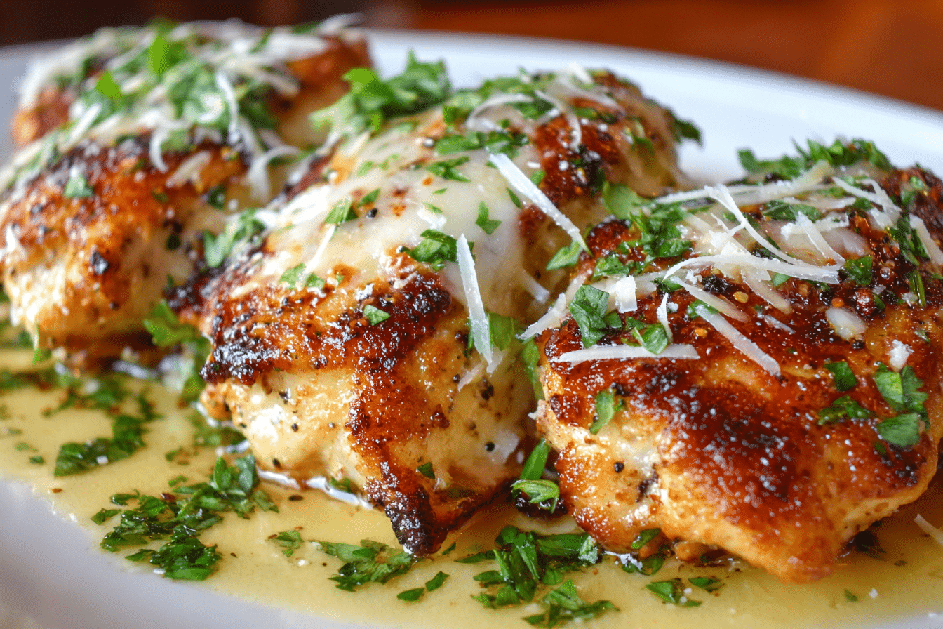 Lemon Chicken Romano is a golden, pan-seared chicken cutlet coated in Romano cheese and finished with a bright lemon butter sauce.