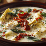Lemony Tuscan artichoke soup is a beautifully light yet deeply satisfying soup that captures the rustic charm of Tuscan countryside cooking. Featuring tender artichoke hearts, creamy white beans, fragrant herbs, and a bright splash of lemon, this Mediterranean-inspired bowl is both nourishing and elegant.
