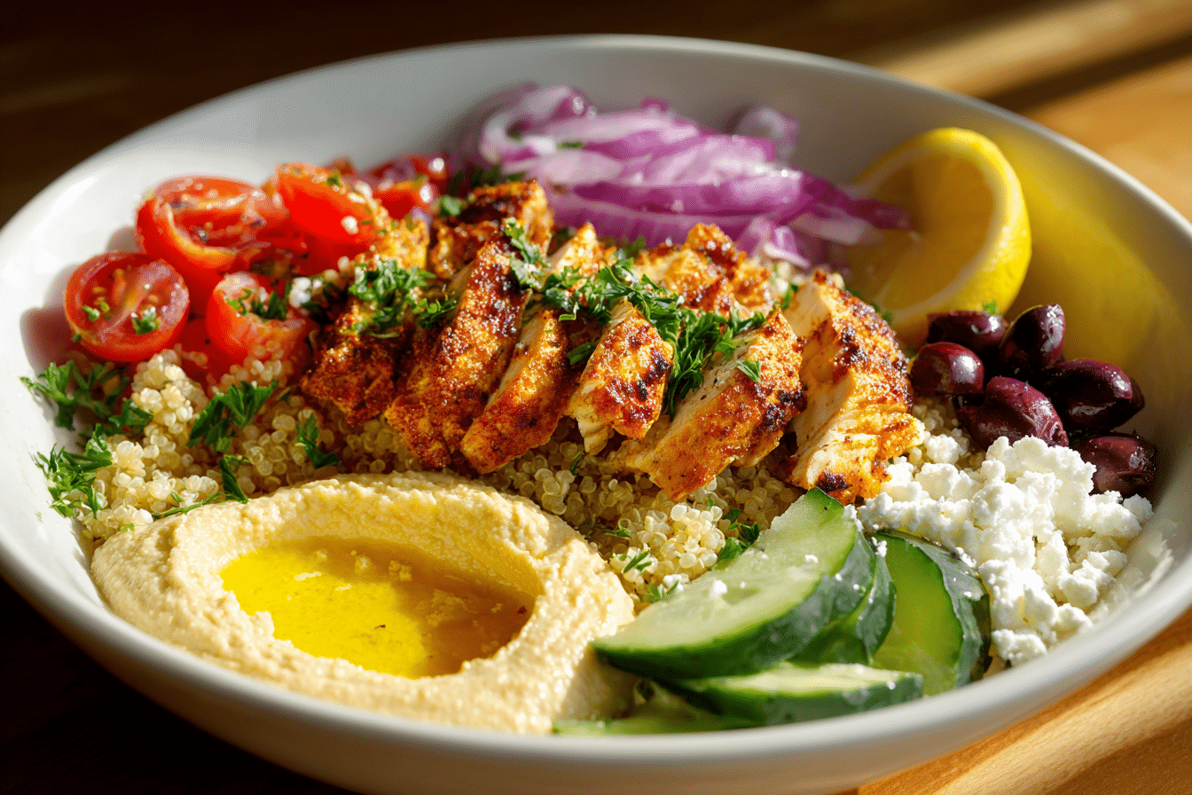 Whether you’re looking for a clean-eating dinner or a crowd-pleasing lunch bowl, the Mediterranean Chicken Bowl brings comfort and brightness with every bite.