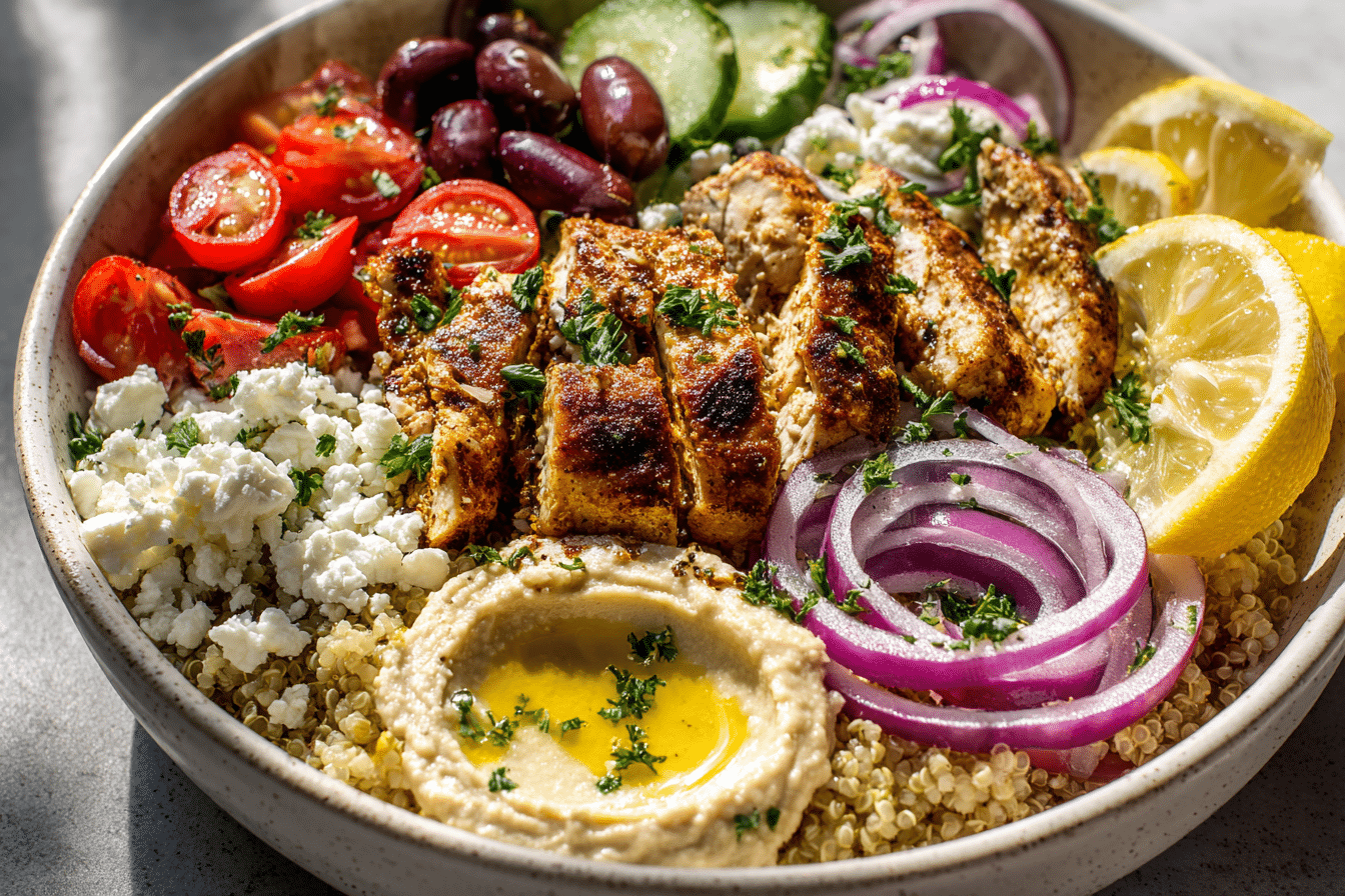 Whether you’re looking for a clean-eating dinner or a crowd-pleasing lunch bowl, the Mediterranean Chicken Bowl brings comfort and brightness with every bite.
