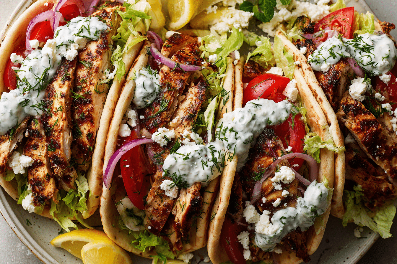 Mediterranean Chicken Gyros with Creamy Feta Tzatziki – A Healthy and Flavorful Greek Dinner Recipe