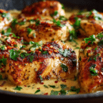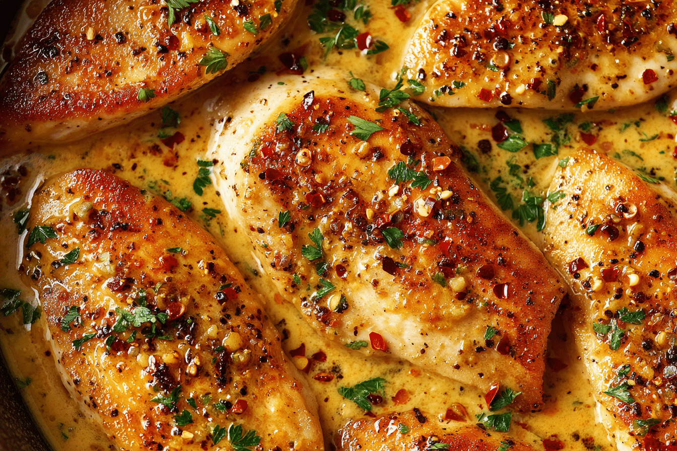 Juicy pan-seared chicken smothered in rich, zesty cowboy butter sauce with garlic, Dijon, lemon, and fresh herbs. A bold and buttery dish perfect for any night of the week.