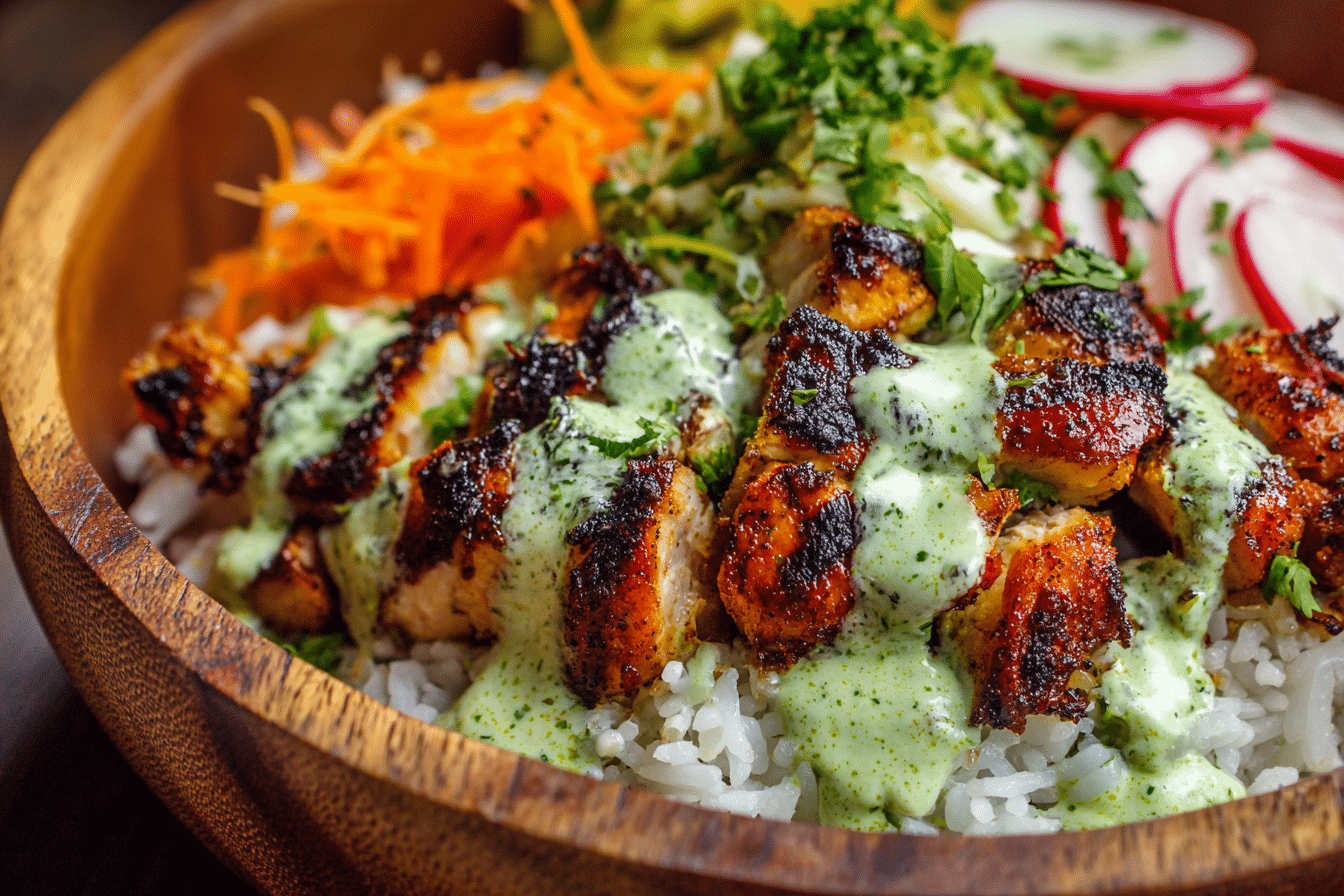 Spiced roasted chicken served over fluffy rice with a creamy herb-packed green sauce inspired by classic Peruvian flavors.