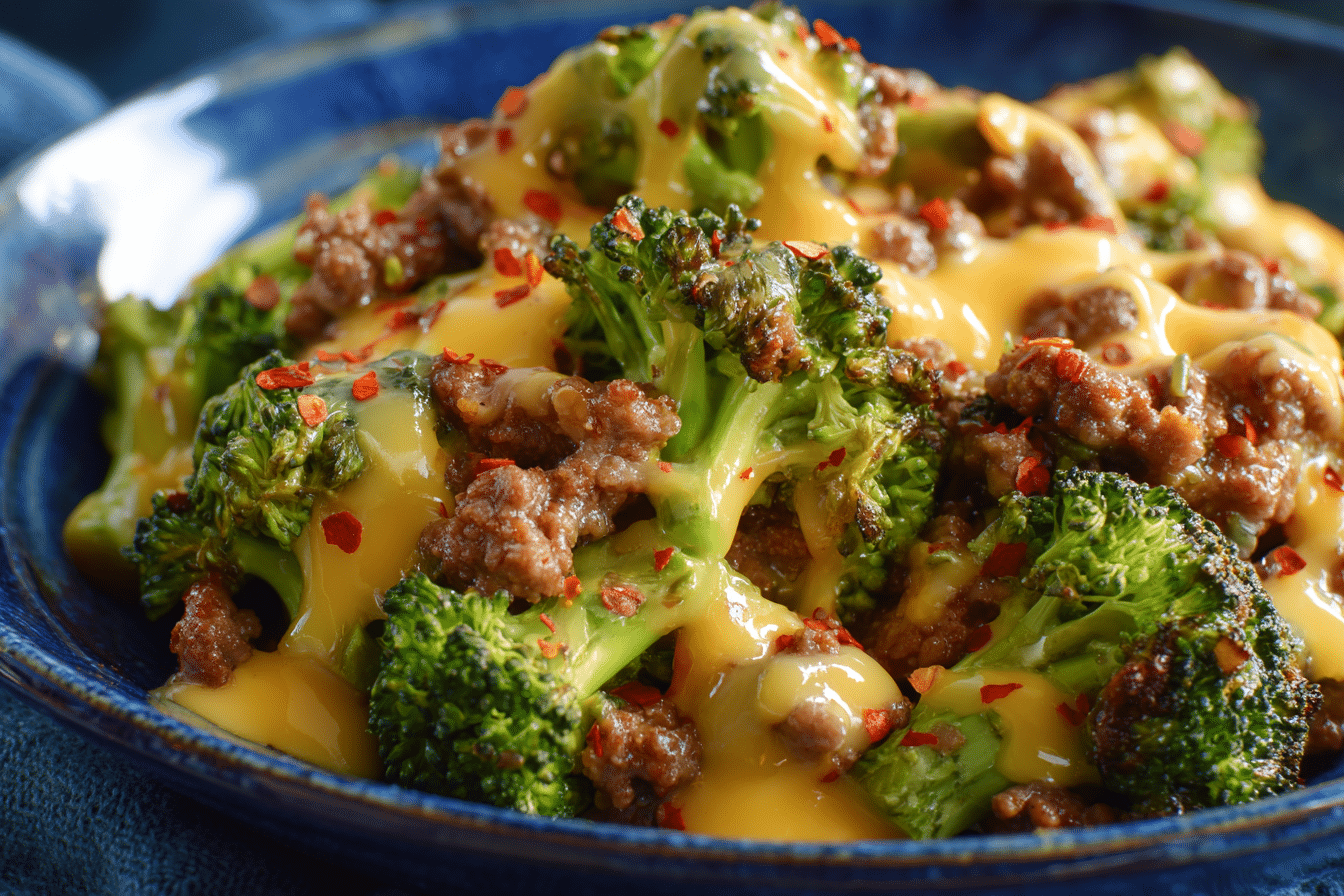 A quick and hearty keto skillet meal made with seasoned ground beef, tender broccoli, and a creamy cheddar cheese sauce. One pan, 30 minutes, and packed with bold flavor.