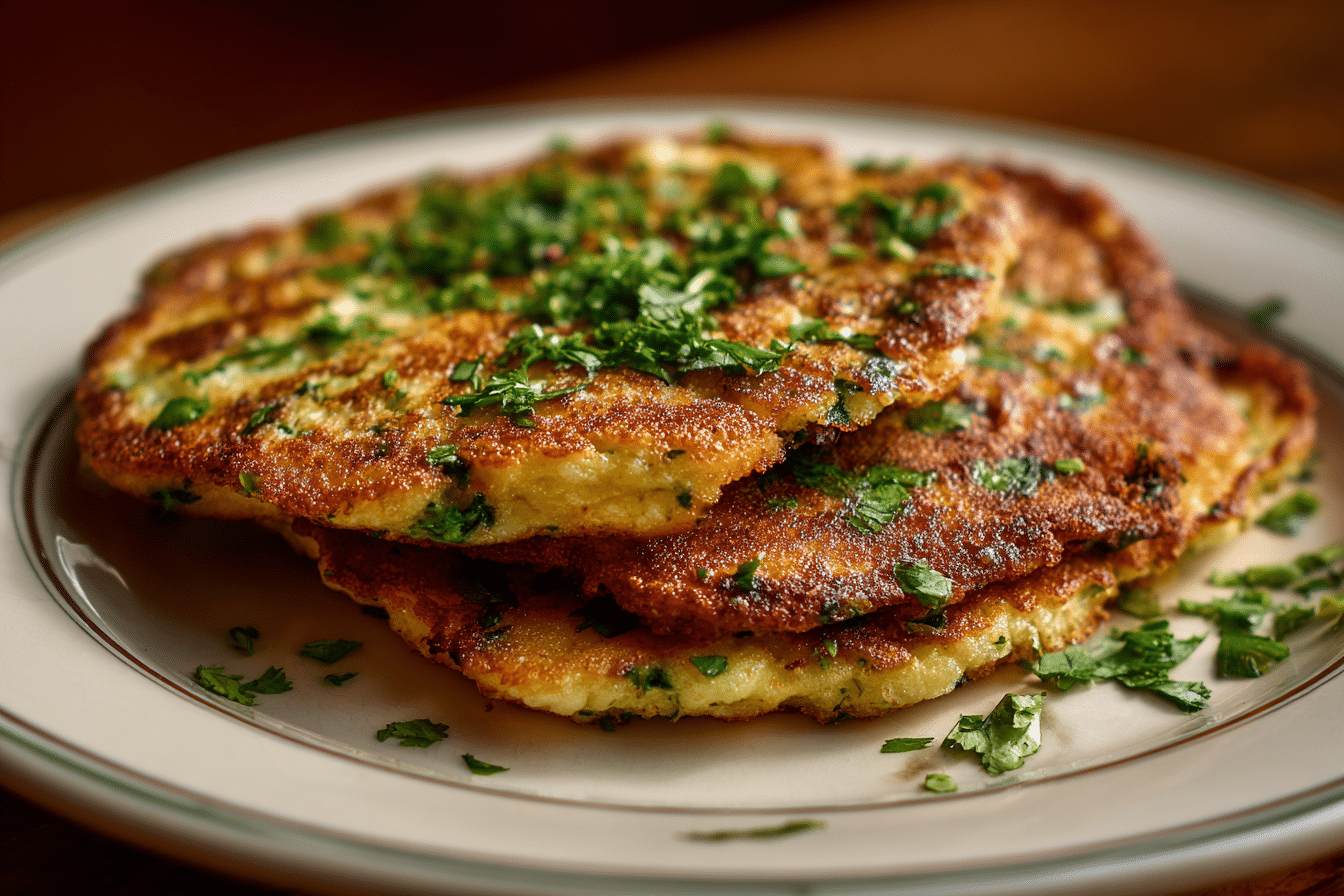 Crispy, savory pancakes made from chickpea flour, herbs, and spices — a naturally gluten-free, high-protein dish perfect for any meal of the day.