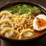 This Savory Dumpling Ramen Bowl with Soft-Boiled Eggs and Fresh Greens is a soul-warming fusion of comfort and flavor. Think rich, aromatic broth, tender dumplings, jammy eggs, and crisp greens — all coming together in one steamy, slurp-worthy bowl. It’s a restaurant-style dish made easily at home and perfect for chilly evenings or when you need a nourishing pick-me-up.