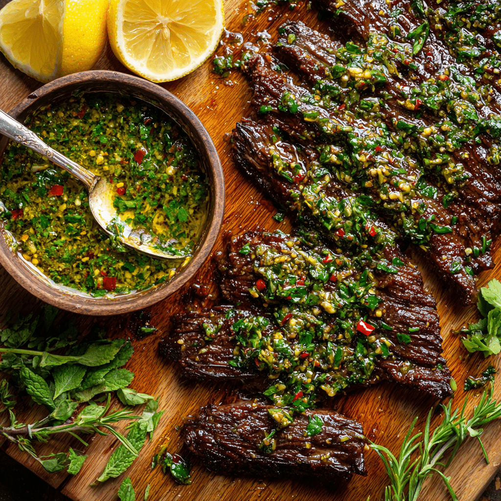 Inspired by the iconic Chimichurri from Argentina, this dish balances smoky grilled beef with fresh herbs and tangy vinegar.