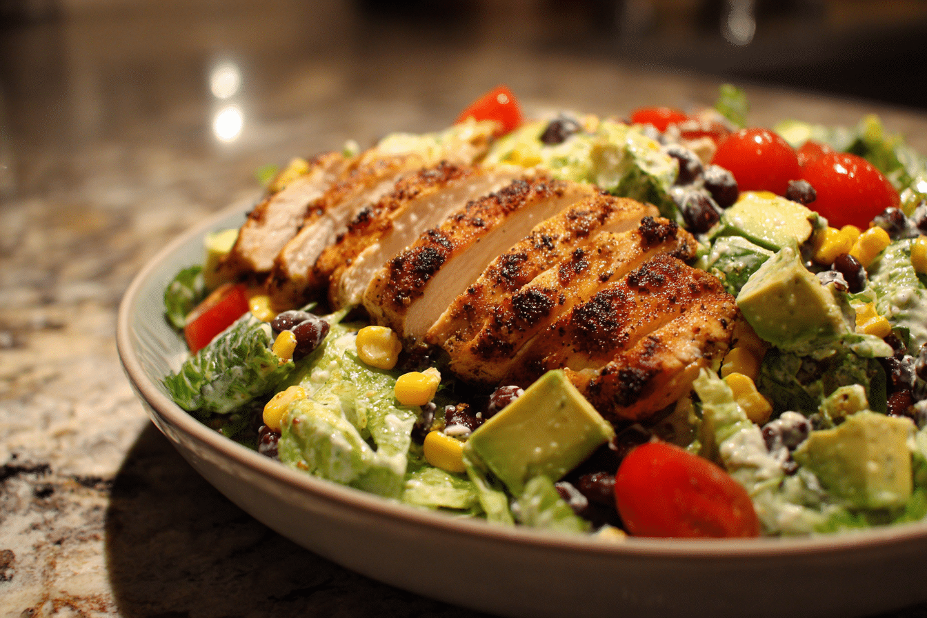 This salad can be adjusted in many ways depending on preference. For a spicier version, cayenne pepper or smoked paprika can be added to the chicken seasoning. This increases heat without changing the structure of the dish.
