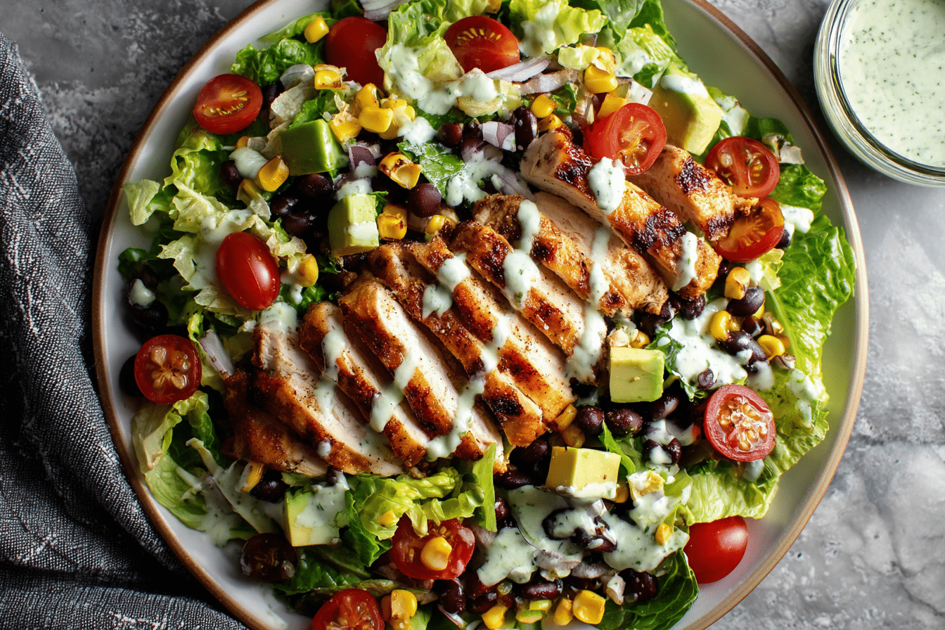 The seasoning blend gives the salad its Southwestern character. A combination of chili powder, cumin, garlic powder, salt, and black pepper adds warmth and depth. These spices coat the chicken and give it a light smoky flavor without overpowering the dish.