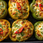 As the peppers bake, their natural sweetness intensifies and blends beautifully with the seasoned rice mixture. The filling stays moist and flavorful, while the tops develop a gentle golden finish. This dish feels hearty without being heavy, making it perfect for both weeknight dinners and casual gatherings.