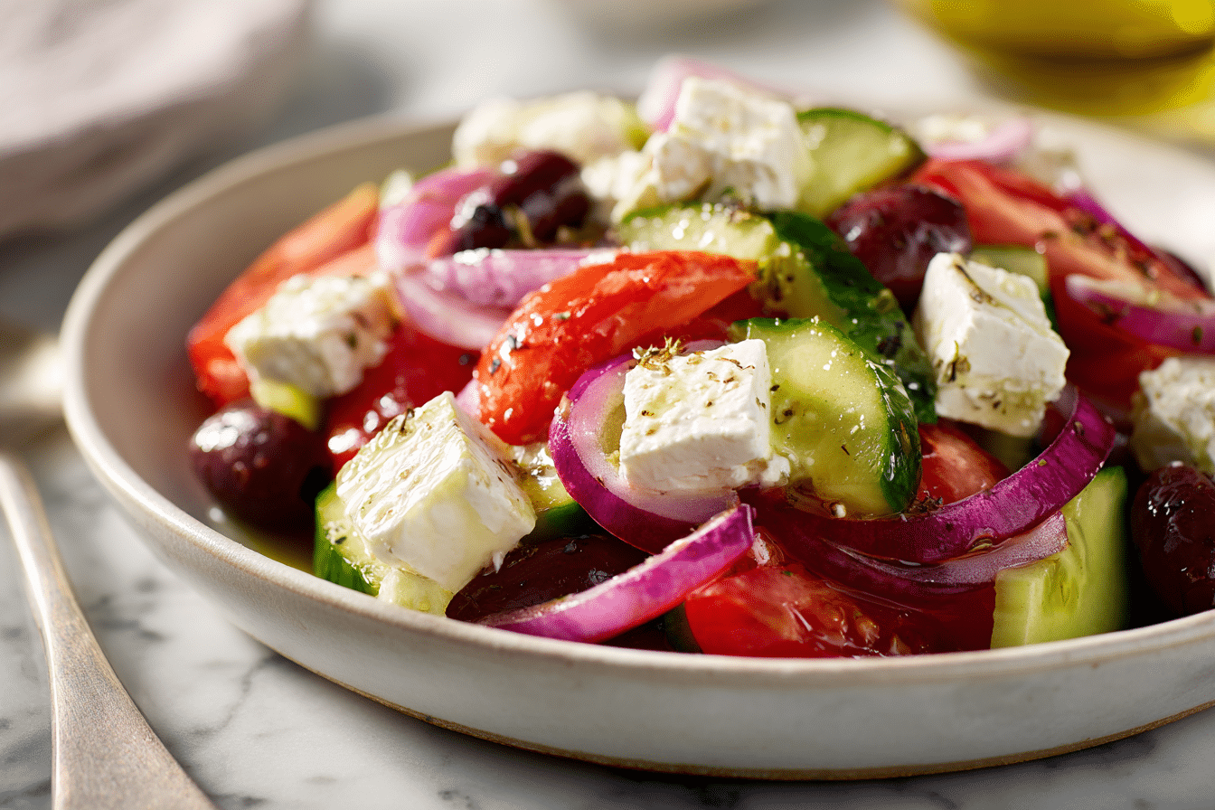 This Best Greek Salad Recipe is fresh, simple, and packed with bold Mediterranean flavors, making it a timeless healthy favorite 🇬🇷🥗✨