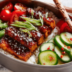 Need a satisfying plant-based lunch that’s easy to prep, high in protein, and totally delicious? This Tofu Teriyaki Bento Box hits every mark — crispy golden tofu tossed in a sticky-sweet homemade teriyaki glaze, served alongside brown rice, fresh veggies, and juicy fruit for a colorful, well-balanced meal.
