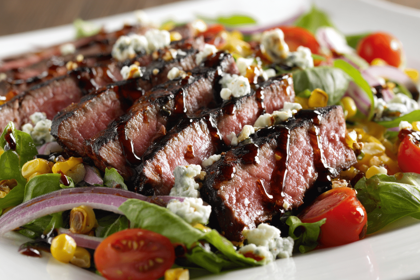 Ultimate Grilled Balsamic Steak Salad with Creamy Gorgonzola & Sweet Corn is bold, vibrant, and perfectly balanced. Juicy grilled steak is layered over crisp greens, sweet charred corn, and creamy crumbles of Gorgonzola, then finished with a rich balsamic glaze.