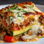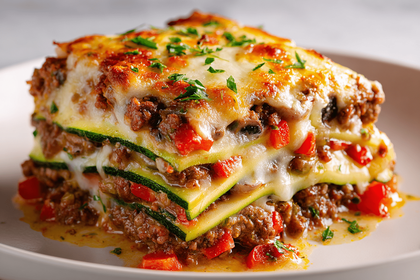 This zucchini pizza casserole transforms shredded zucchini into a crispy, cheesy crust layered with savory meat, sauce, and classic pizza toppings — a low-carb, family-friendly favorite.